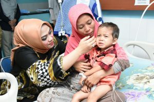 Bupati Karawang dr.Cellica Nurrachadiana menjenguk H Hasby balita asal Desa Makmurjaya Kecamatan Jayakerta di RSUD Karawang.