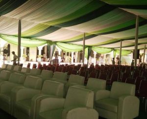 Tenda dan kursi tampak terpasang di halaman Pondok Pesantren Asshiddiqiyah 3 . Namun Presiden RI Joko Widodo batal hadir ke Kota Pangkal Perjuangan.