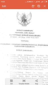 KARAWANG – Meski perlu dibuktikan, namun diduga kuat alokasi anggaran bantuan gubernur dari Provinsi Jawa Barat senilai Rp100 juta tahun anggaran (TA) 2017 untuk kegiatan tanggung jawab sosial perusahaan atau Corporate Social Responsibility (CSR) melalui Badan Perencanaan dan Pembangunan Daerah (BAPPEDA) Kabupaten Karawang disalahgunakan. Dugaan muncul lantaran pemanfaatan dana bantuan tersebut hanya digunakan untuk menyusun sebuah surat keputusan (SK) Bupati tentang tim fasilitasi kegiatan CSR.