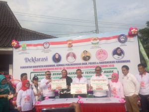 Dengan demikian, Pemerintah Kabupaten Karawang, Komnas Perlindungan Anak, Polres dan Bhayangkari Karawang melangsungkan deklarasi Karawang Bebas Kekerasan terhadap anak, Jumat (6/4/2018) di Lapang Karangpawitan.