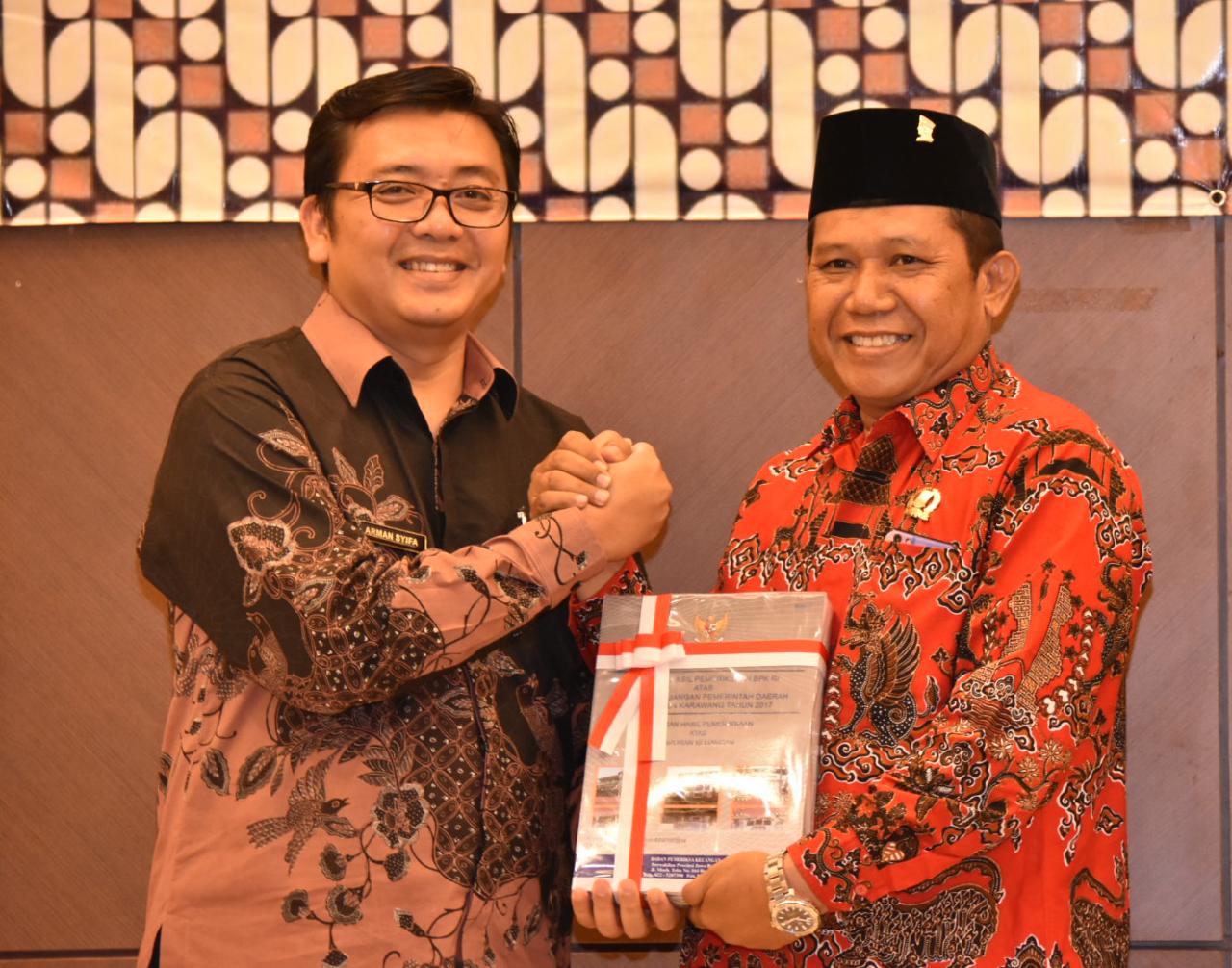 KARAWANG – Ketua Dewan Perwakilan Rakyat Daerah (DPRD) Kabupaten Karawan, H.Toto Suripto mendampingi Bupati Karawang, dr. Cellica Nurrachadiana menerima penghargaan Opini Wajar Tanpa Pengecualian ketiga kalinya atas Laporan Keuangan Pemerintah Daerah Tahun Anggaran 2017 oleh Badan Pemeriksa Keungan RI Perwakilan Provinsi Jawa Barat, kemarin.
