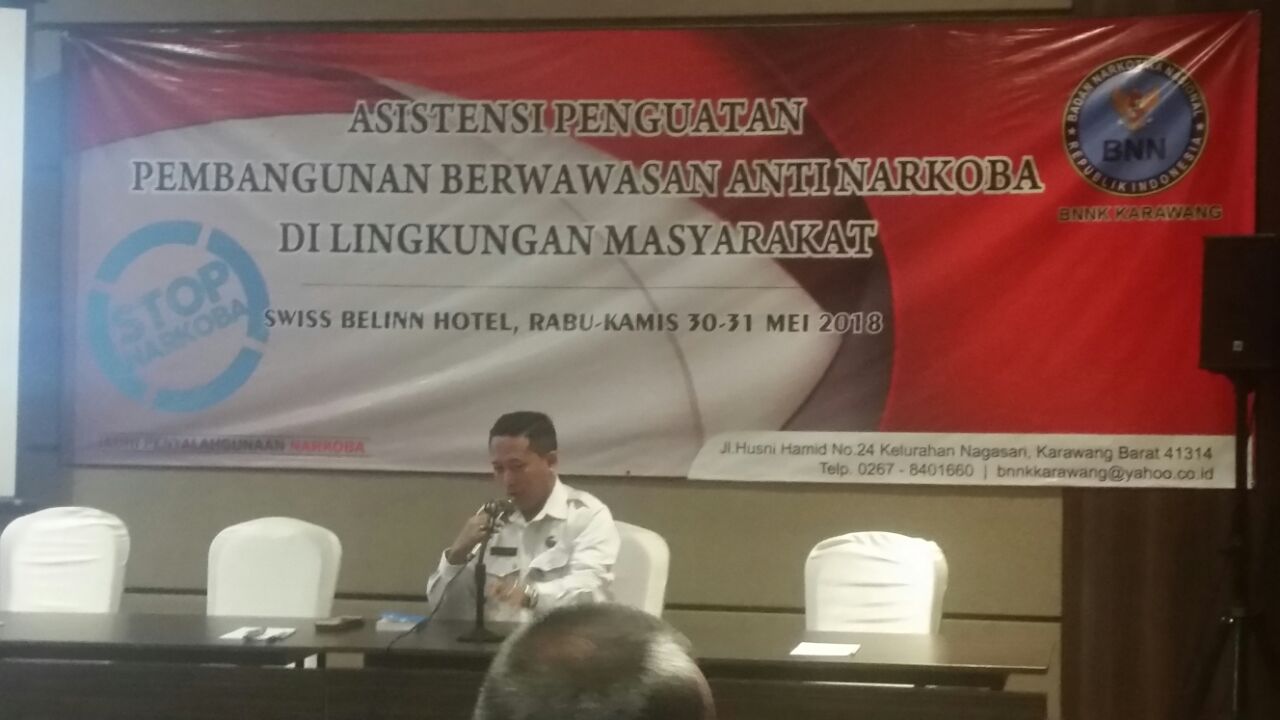 KARAWANG-Badan Narkotika Nasional Kabupaten (BNNK) Karawang menggelar Asistensi penguatan pembangunan berwawasan anti narkoba di lingkungan masyarakat, di hotel Swiss bellin, Kamis (31/5).