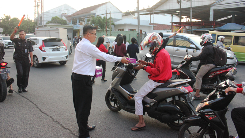 KARAWANG – Menyemarakkan momen Ramadhan dan membangkitkan semangat berbagi dengan sesama, Swiss-Belinn Karawang melakukan bagi-bagi takjil di jalan kepada masyarakat yang melintas di depan tempat beroperasinya hotel, Jalan Jenderal Ahmad Yani, No. 29 Karawang, Senin (11/6/2018).