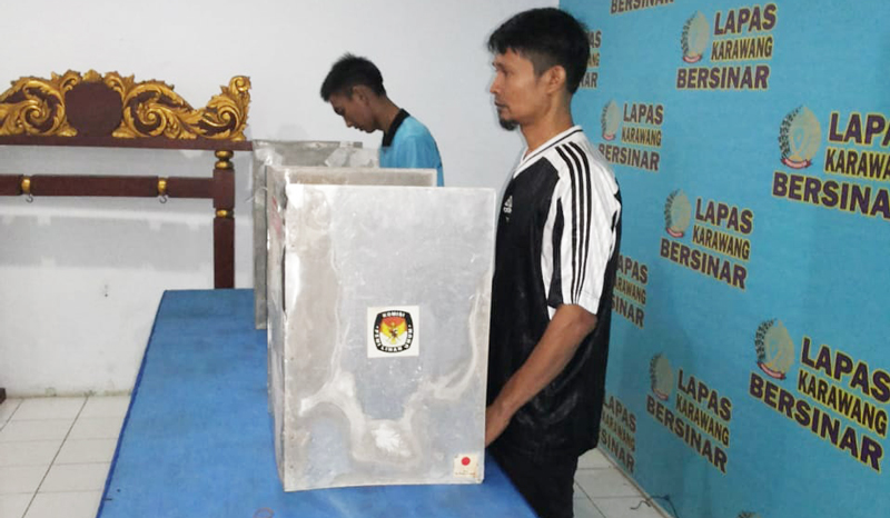 “Dari total sebanyak 1197 warga binaan di Lembaga Permasyarakatan Karawang, tercatat Daftar Pemilih Tetap (DPT) sebanyak 778 orang dan diantaranya pemilih wanita 32 orang. Untuk teknis pelaksanaan, kami dibantu oleh petugas KPPS dari pihak Desa Warungbambu, Kecamatan Karawang Timur, dan juga melibatkan warga binaan untuk menjadi petugas KPPS,” jelasnya.
