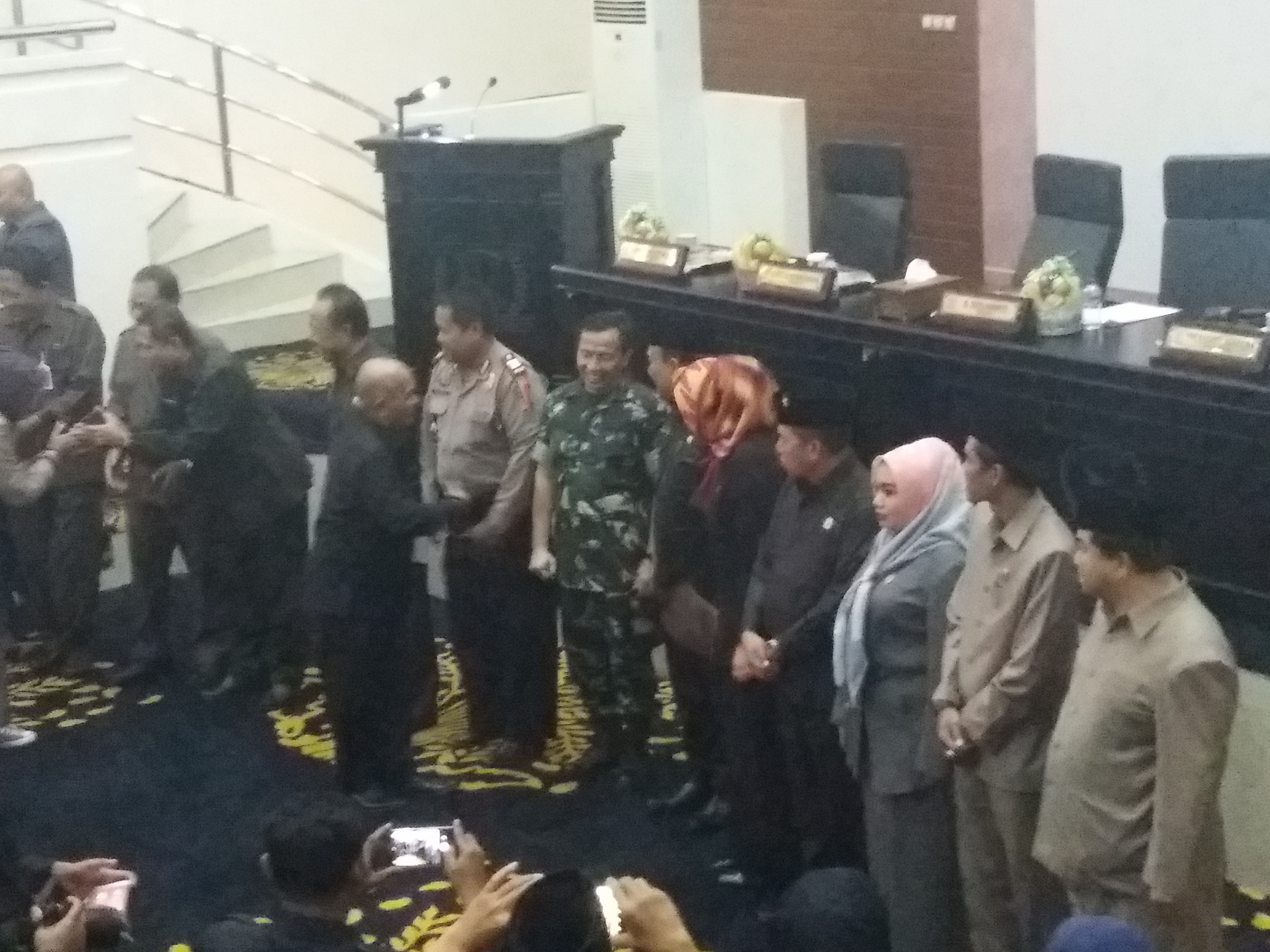 Kemudian anggota DPRD dan Muspida secara antri salam-salaman. Dengan penuh haru mereka saling memaafkan satu sama lain.