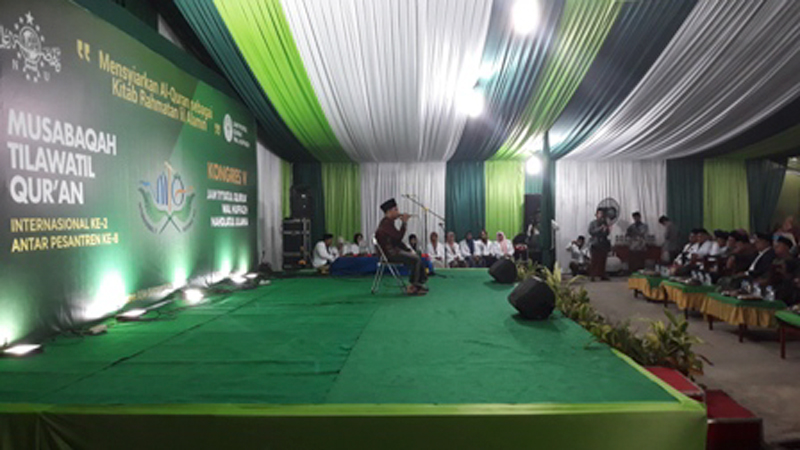 KARAWANG- Sejumlah qori dan hafidz lintas pesantren NU di pelosok provinsi seluruh Indonesia turut memeriahkan kegiatan kongres Jamiyyatul Qura Wal Hufadz (JQH) dalam MTQ ke 8 Nasional dan MTQ ke 2 Internasional di lingkungan Pondok Pesantren Asshiddiqiyah di Kecamatan Cilamaya pimpinan KH Hasanuri Hidayatullah, (11-15/7).