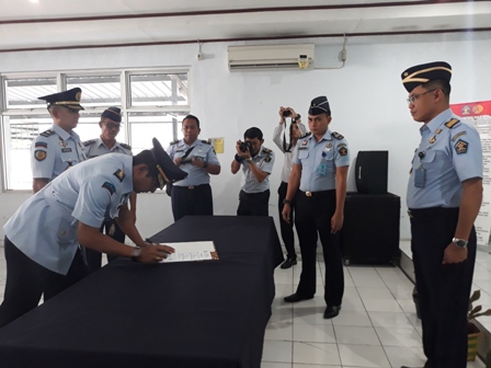 KARAWANG-Terhitung, Selasa (31/7) Plt Kepala Lembaga Pemasyarakatan Kelas II A Karawang diserahterimakan dari Noveri Budi Santoso kepada pejabat baru yaitu Kadek Anton Budiharta yang saat ini masih menjabat Kalapas Cikarang, Kabupaten Bekasi.