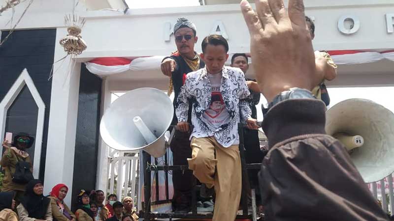 Buktinya setelah anggota DPRD setempat, H Endang Sodikin dan Asep Syaripudin memberikan orasinya di mobil komando, tiba-tiba ada salah seorang yang mengenakan baju batik PGRI dan celana PNS melakukan orasi.