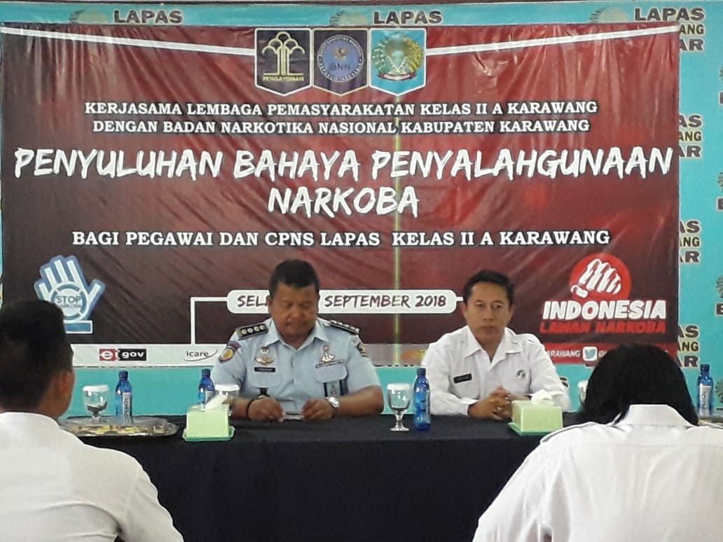 KARAWANG- Sebagai bentuk kerjasama antara Badan Narkotika Nasional Kabupaten (BNNK) Karawang dengan Lembaga Pemasyarakatan (LP) Kelas II A Karawang, Selasa (25/9) dalam mengantisipasi peredaran narkotika dikalangan pegawai dan warga binaan. BNNK Karawang lakukan melakukan tes urine kepada pegawai Lapas, CPNS dan warga binaan.