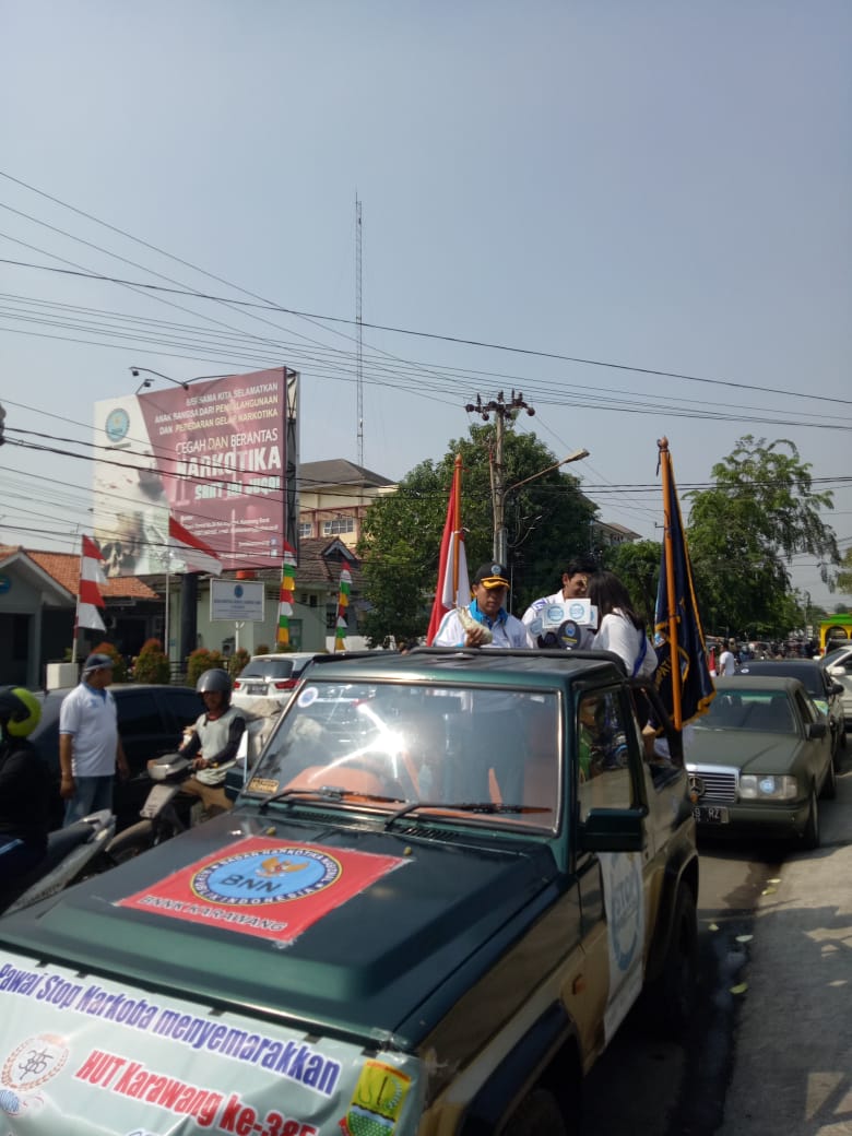 “BNNK Karawang bersama dengan relawan dan penggiat anti narkoba dari kelompok masyarakat mengadakan kegiatan kampanye stop narkoba melalui pawai. Kegiatan ini masih rangkaian HUT Kabupaten Karawang ke-385 dengan tema Semarak Bersinar, dan diikuti oleh kurang lebih sebanyak 300 peserta,” kata Kepala BNNK Karawang, AKBP Julian.