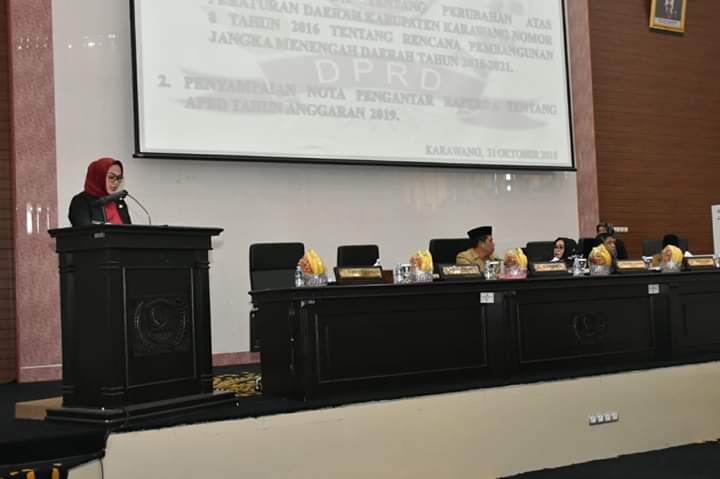 Pada kesempatan itu, Bupati Karawang, dr. Hj. Cellica Nurrachadiana hadir dalam rapat Paripurna di gedung DPRD Karawang.