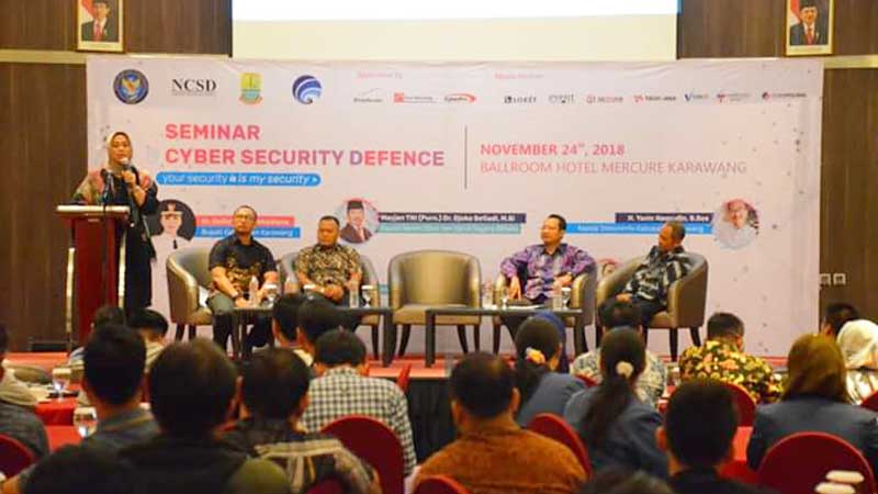 Kegiatan Seminar Cyber Security Defence ini diharapkan mampu menjadi sarana pembelajaran, informasi dan komunikasi bagi masyarakat dan instansi pemerintah daerah dalam upaya penanggulangan dari serangan yang terjadi di Indonesia khususnya pada serangan cyber. Seminar tersebut digelar di Ballroom Mercure Hotel karawang dan dihadiri Bupati karawang dr. Hj. Cellica Nurrachadiana, Sabtu (24/11/2018).