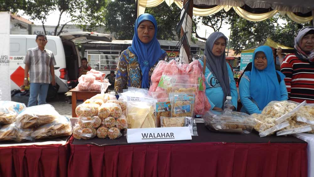 Salah satu penjaga Stand Bazar dari Desa Walahar, Erna mempromosikan beberapa produk yang dibuat di Desa Walahar, Diantaranya Aneka Keripik dan Kerupuk Cikur RO. Diakuinya produk tersebut adalah produk yang dibuat dikemas dan dipasarkan oleh satu keluarga.