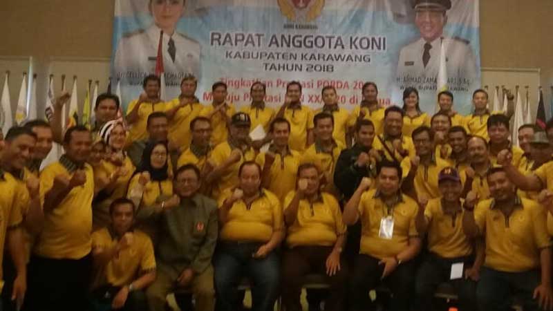 Ketua pelaksana rapat anggota Koni Karawang, Dedi Rustandi, mengatakan rapat anggota dilaksanakan berdasarkan AD/ART organisasi. Pesertanya dari cabang olahraga (Cabor) sebanyak 40 dan badan fungsional ada 2 yaitu Bapopsi dan Perwosi.