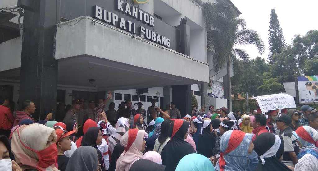 SUBANG – Ratusan pedagang pasar Purwadadi mendesak agar bupati Subang membatalkan rencana revitalisasi pasar Purwadadi yang akan dikerjasamakan dengan pihak ketiga. Aspirasi para pedagang tersebut disampaikan langsung didepan Kantor Bupati saat menggelar aksi unjuk rasa, Rabu (26/12).