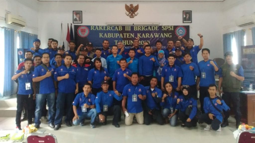 KARAWANG – Satuan anggota yang dilatih dan dibina khusus oleh Serikat Pekerja Seluruh Indonesia (SPSI) atau dikenal dengan Brigade SPSI, Kabupaten Karawang gelar Rapat Kerja Cabang (Rakercab) III, di aula Disnakertrans, Sabtu (19/1).