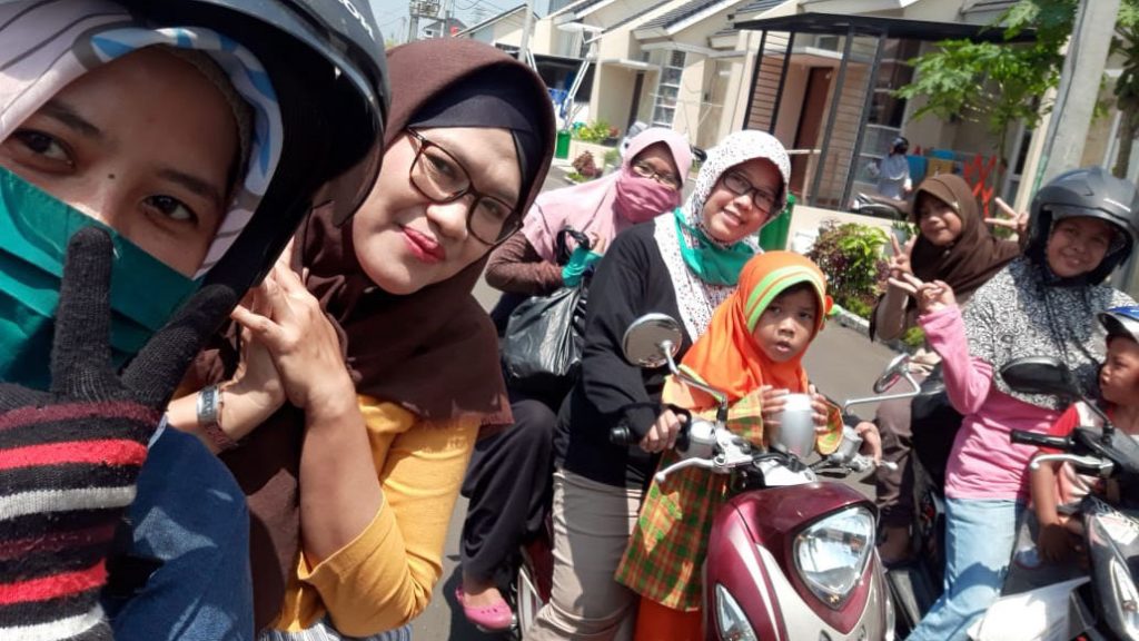 Dengan menggunakan sepeda motor, Emak-ema ini konvoi keliling dari Pinayungan, Galuh Mas sampai Alun-alun membagikan nasi bungkus gratis peruntukan tukang becak, tukang ojek, pemulung, anak jalanan, tukang kebun dan masyarakat Karawang lainnya yang membutuhkan.