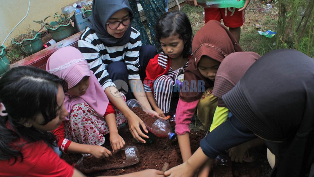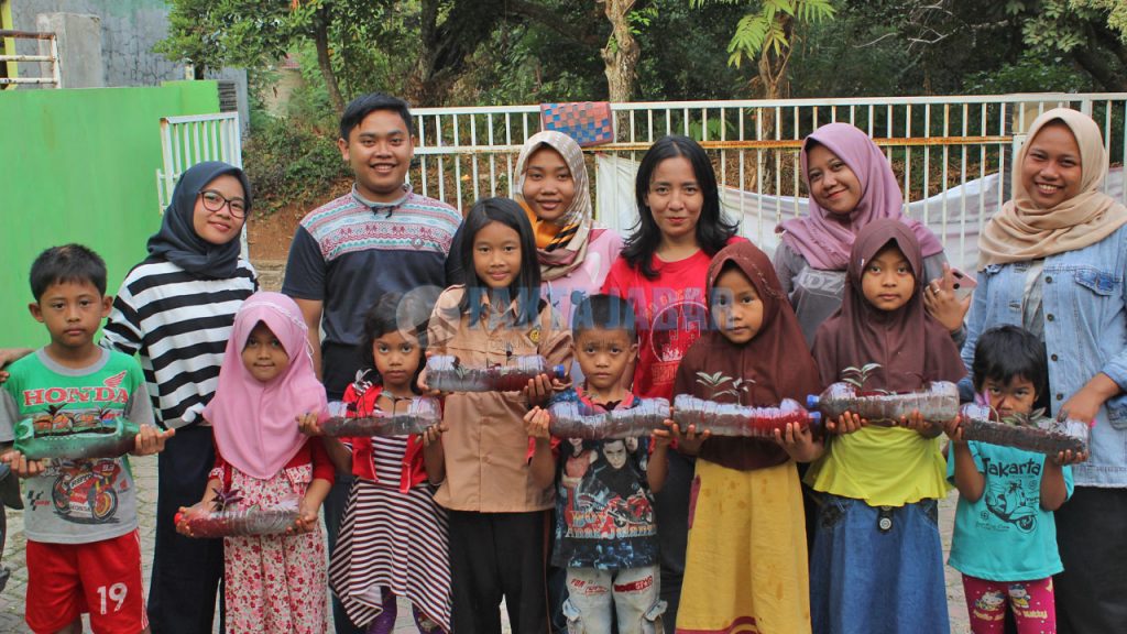 Dengan bermodal botol bekas mereka mengajak anak-anak usia 8-12 tahun untuk menanam tanaman hias. Selain mengurangi sampah botol plastik menanam tanaman hias pun dapat mengedukasi anak-anak SD yang tadinya belum mengerti tentang pentingnya menjaga lingkungan sehingga menjadi teredukasi sejak dini.