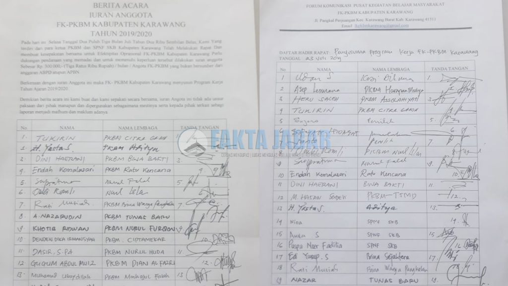 “Kita sepakati bersama untuk iuran dana per PKBM untuk setiap bulannya adalah Rp.300.000 dan semua peserta rapat juga sudah menandatangani berita acara tersebut,” kata Ketua FK-PKBM Kabupaten Karawang, Heru Saleh pada Fakta Jabar, Selasa (23/7).