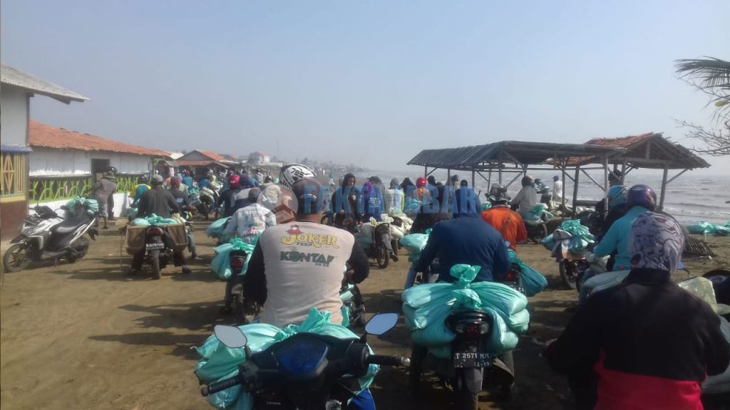 KARAWANG – Raut wajah Karyudi, petani tambak asal Desa Sedari Kecamatan Cibuaya, Kabupaten Karawang, Jawa Barat, sedikit masam. Dahinya mengerenyit keatas matanya sayu. Seraya membawa karung, petani tambak yang juga staf Desa Sadari dibawah kepemimpinan Kepala Desa Bisri Mustopa ini, mengumpulkan dan menaruh sedikit demi sedikit gundukan pasir bercampur minyak yang tercemar di Pantai Sadari. Rabu 31 Agustus 2019, sampai pukul 11.00 WIB, Karyudi sudah mengumpulkan empat karung berisi pasir bercampur minyak milik pertamina yang tercecer di pantai dekat rumahnya itu.