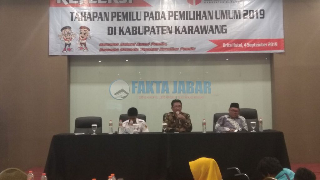 KARAWANG – Badan Pengawas Pemilihan Umum (Bawaslu) Kabupaten Karawang menggelar kegiatan refleksi Pemilihan Umum (Pemilu) Tahun 2019 di Brits Hotel, Rabu, (4/9). Dalam kesempatan ini, Bawaslu memberikan pemaparan mulai dari melakukan serangkaian pengawasan sampai dengan penindakan terhadap semua tahapan dalam Pemilu tersebut. Bahkan, Bawaslu telah melakukan pengawasan sebanyak 278 hal yang tercantum dalam Laporan Hasil Pengawasan (LHP), baik yang dilakukan oleh Bawaslu dan juga Panwascam di 30 Kecamatan.