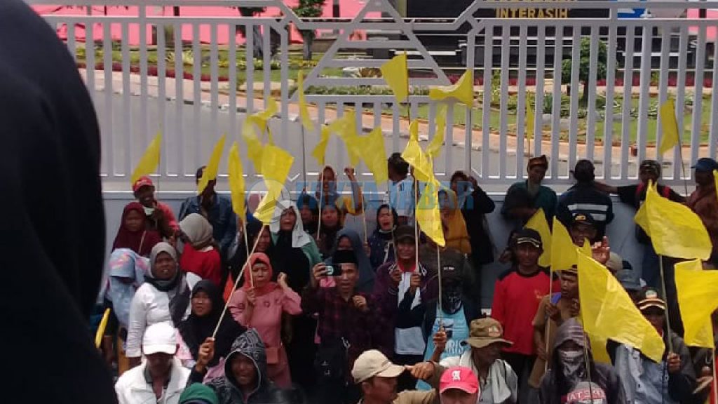 KARAWANG – Kantor Bupati Karawang didatangi massa aksi yang membawa bendera kuning, Selasa (24/9/2019).