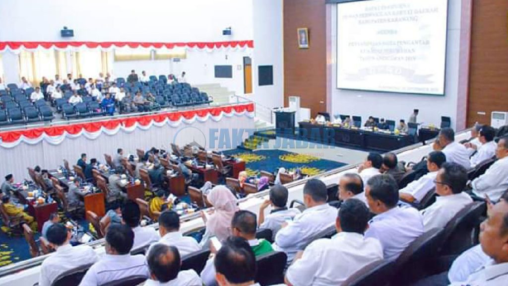 KARAWANG – Dewan Perwakilan Rakyat Daerah (DPRD) Kabupaten Karawang melakukan rapat paripurna dengan membahas agenda penyampaian nota pengantar Kebijakan Umum Anggaran (KUA) dan Prioritas Plafon Anggaran Sementara (PPAS) perubahan tahun anggaran 2019, di ruang rapat paripurna DPRD Karawang, Rabu (25/9/2019).