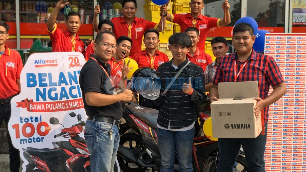 KARAWANG – PT Sumber Alfaria Trijaya Tbk, pengelola jaringan ritel minimarket Alfamart menggelar Program Belanja Ngacir dengan hadiah 1 unit sepeda motor Mio setiap hari dan 1 unit sepeda motor Nmax setiap minggu.