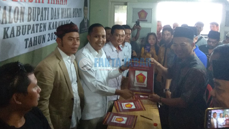 KARAWANG – Dengan didampingi oleh 5 Pimpinan Partai Politik diantaranya adalah PDI Perjuangan, PAN, PPP, Hanura, PBB dan beberapa Lembaga Swadaya Masyarakat (LSM), H. Zaenal Arifin mendatangi Kantor DPC Partai Gerindra untuk mengikuti penjaringan Calon Bupati dan Wakil Bupati yang digelar Badan Pemenangan Kepala Daerah (Bappda) DPC Partai Gerindra Kabupaten Karawang, Selasa (29/10).