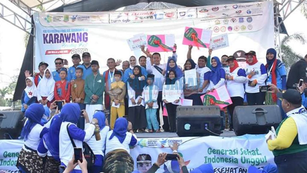 KARAWANG– Bupati Karawang, dr. Hj. Cellica Nurrachadiana mengaku bangga dengan kinerja para tenaga medis di Kabupaten Karawang, saat memberikan sambutan di kegiatan jalan sehat dalam rangka Hari Kesehatan Nasional (HKN) ke-55, di Plaza Pemkab Karawang, Minggu (24/10/2019) pagi.