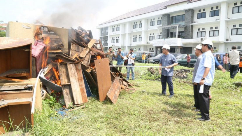 FAKTAJABAR.CO.ID – Pemerintah Kota (Pemkot) Tasikmalaya memusnahkan sekitar 596 unit aset daerah yang tak lagi terpakai, Jumat (27/12). Barang-barang semacam meubel, perangkat keras komputer, hingga kertas dokumen, dimusnahkan dengan cara dihancurkan lalu dibakar.