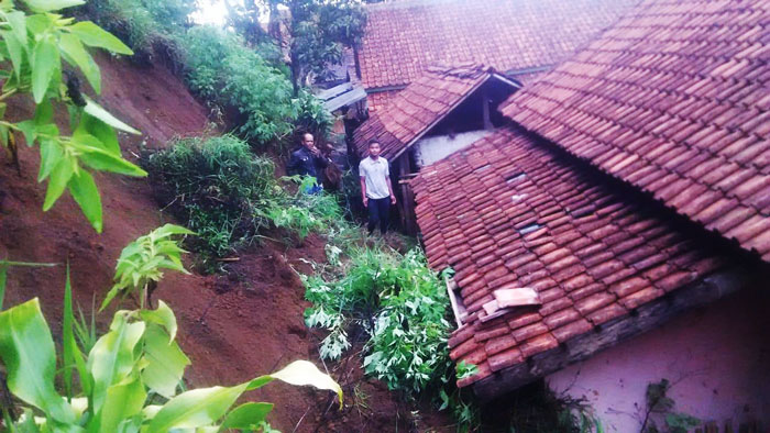 Longsor kedua, menimpa tiga rumah warga di Kampung Cimasuk, Desa Cintamanik, Kecamatan karang Tengah.