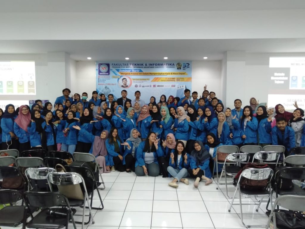 KARAWANG – Mahasiswa Semester III Fakultas Teknik dan Informatika Universitas Bina Sarana Informatika (UBSI) Program Studi Sistem Informasi Akuntansi Kampus Kabupaten Karawang, menyelenggarakan kegiatan Seminar Wajib Karir, Rabu (5/2). Dengan mengusung tema “Mengenal potensi diri dalam mempersiapkan karir di masa depan”, Kegiatan tersebut dilangsungkan di Aula UBSI kampus Karawang, Jalan Banten Nomor 1, Karangpawitan.