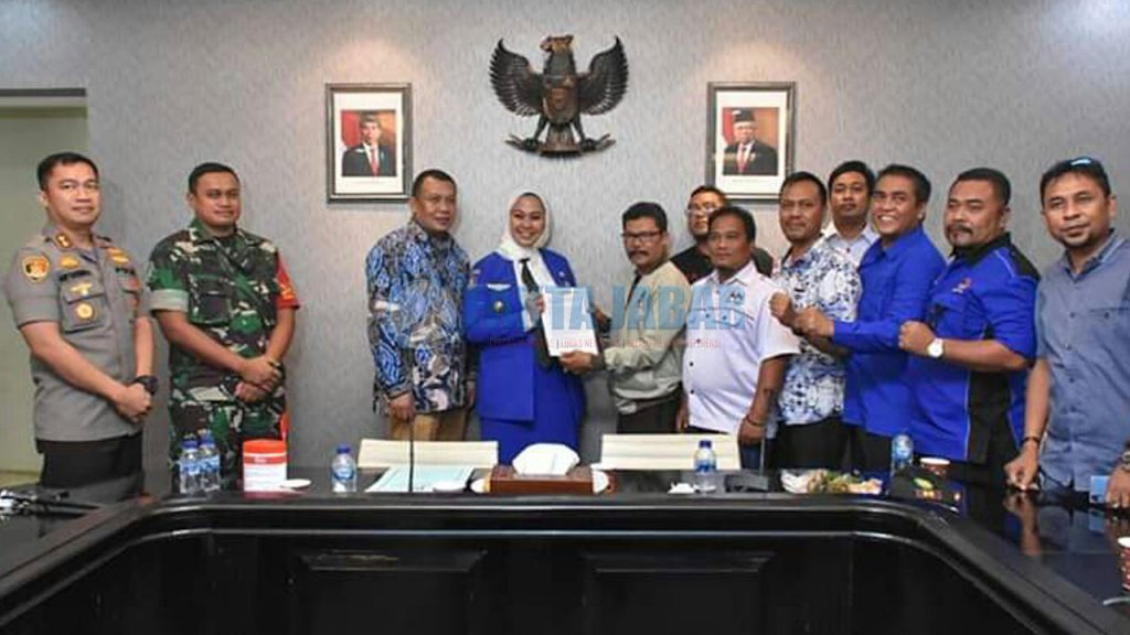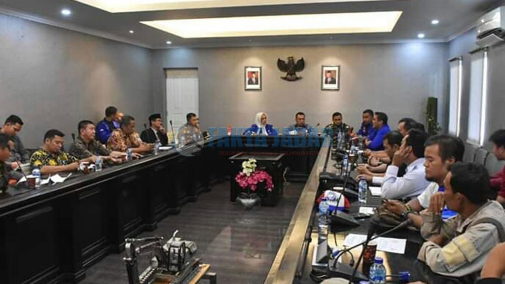 KARAWANG – Ketua Dewan Perwakilan Rakyat Daerah (DPRD) Kabupaten Karawang, Pendi Anwar bersama Bupati Cellica Nurrachadiana menerima perwakilan Aliansi Serikat Pekerja yang terdiri atas berbagai aliansi federasi seluruh Karawang, Kamis (12/3/2020) siang di Lantai 2 Pemda Karawang.