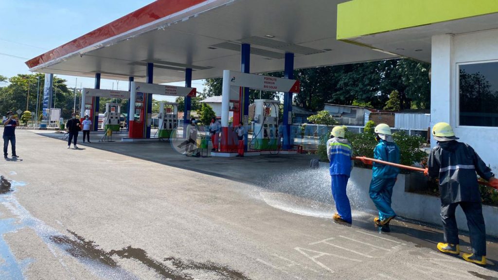 Seperti yang dilakukan di SPBU 3145101 & 3445116 di Jl. Raya Brigjend Dharsono, Kota Cirebon. Penyemprotan desinfektan dilakukan pada Jumat pagi (27/3) bekerjasama dengan Dinas Pemadam Kebakaran setempat dan Himpunan Wiraswasta Nasional Minyak dan Gas Bumi (Hiswana Migas).
