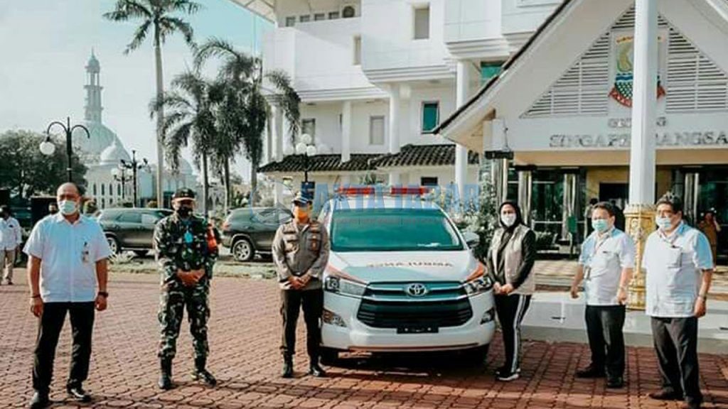 KARAWANG – PT Toyota Motor Manufacturing Indonesia (TMMIN) menyerahkan donasi penanganan COVID-19 kepada Pemerintah Kabupaten (Pemkab) Karawang berupa dua unit mobil Ambulance type basic plus Inova dan 3000 Alat Pelindung Diri (APD).