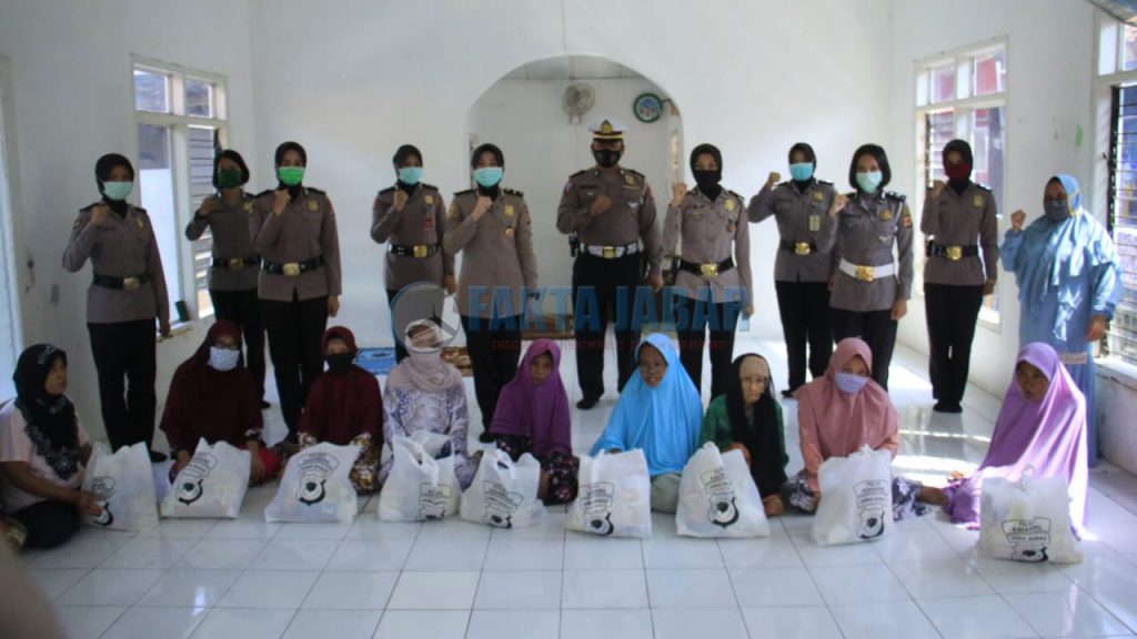 AKP Iis Puspita SH.MH, bersama dengan polwan lainnya memberikan bingkisan berupa sembako kepada kaum Duafa sebagai bentuk kepedulian dan tali kasih kepada sesama.