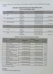 “Kemudian lain-lain pendapatan, target Rp.1.156.938.484.103, realisasi Rp.598.447.493.883 dan persentasi 51,73 %,” jelasnya, Jumat (2/10/2020).