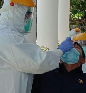 Karawang – Juru bicara Satuan Tugas Penanganan Covid-19 Karawang, dr. Fitra Hergyana Sp.KK menyampaikan hasil swab tes anggota DPRD Karawang yang semuanya negatif virus corona. Pelaksanaan swab tes bagi anggota DPRD Karawang ini setelah adanya salah satu peserta rapat di Gedung DPRD terkonfirmasi virus corona.