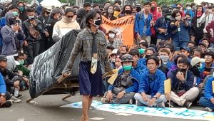 Sekitar pukul10.00 WIB mahasiswa dari berbagai kampus tersebut berdatangan ke Kantor Pemda Karawang menuntut pencabutan Omnibus Law UU Cipta Kerja yang sudah sah-kan DPR belum lama ini.