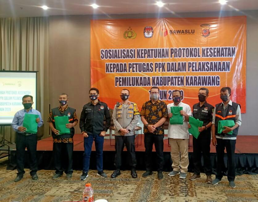 Wakapolres Karawang, Kompol Ahmad Faisal Pasaribu, mengatakan sosialisasi protokoler kesehatan sebagai upaya Polres Karawang dalam membantu KPU beserta Bawaslu Kabupaten dikarenakan situasi sekarang berbeda, ditengah pandemi.