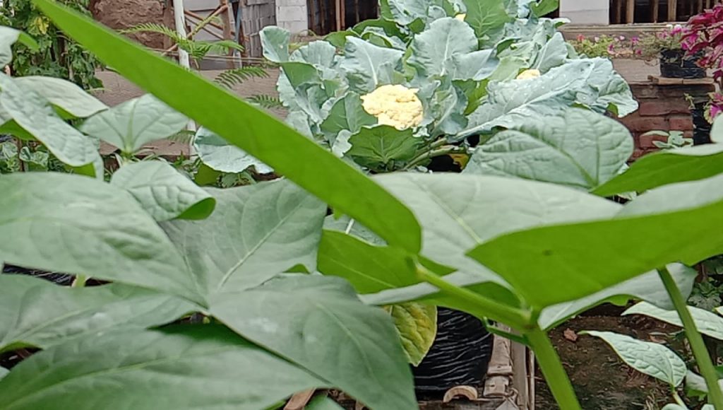 “Selain kembang kol tanaman lain pun ada. Misalnya sayuran kangkung, cabe rawit, cabe, kacang panjang dan seterusnya. Tanaman bunga juga ada,” jelas Heru.