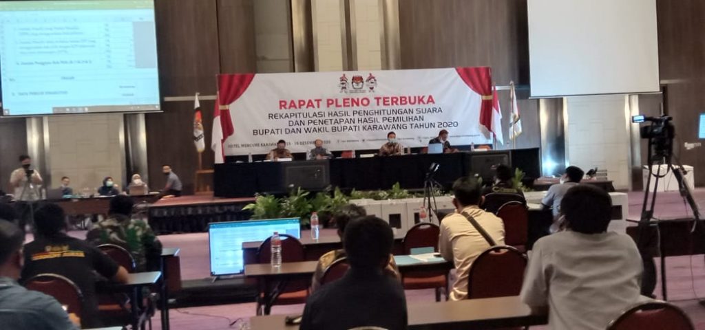 Karawang – Selasa (15/12/2020) Komisi Pemilihan Umum Kabupaten Karawang melakukan pleno menetapkan hasil penghitungan suara pemilihan bupati dan wakil bupati Karawang 2020 di Marcure Galuh Mas, Karawang. Dalam pleno rekapitulasi suara itu, pasangan Cellica Nurrachadiana-Aep Syaepuloh menang telak dengan perolehan 60,05 persen.