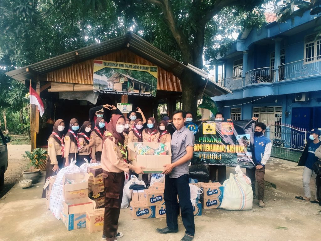 Karawang – Pramuka Salemba Karawang (Pusaka) dari siswa SMPN 1 Lemahabang dan Pramuka Salemba selalu dihati (Prasasti) dari alumni menggalang dana di wilayah Cikampek untuk bantuan korban banjir. Minggu (14/2/2021).