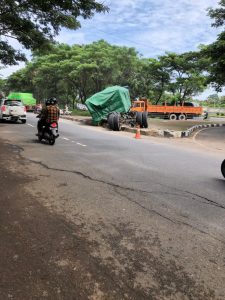 Seperti insiden kecelakaan yang terjadi pada Sabtu (27/2), sekitar pukul 04.00 di Jalan Raya Pancawati, dari arah Cikampek menuju Karawang. Sebuah truck trailer bernomor polisi D 9528 AD harus kehilangan kendali sebelum menabrak trotoar jalan.