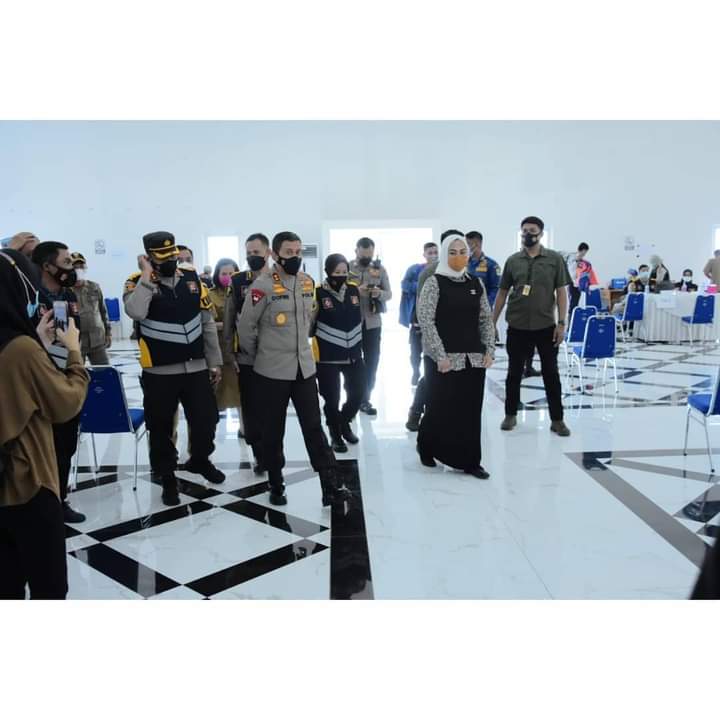 Karawang – Kapolda Jawa Barat Irjen. Ahmad Dofiri bersama Bupati dr. Hj. Cellica Nurrachadiana memantau langsung pelaksanaan vaksinasi di hari kedua bagi ASN dan non ASN di lingkungan Pemerintahan Kabupatan Karawang yang berlangsung di Aula Husni Hamid Komplek Pemda Karawang, Selasa (9/3/2021).