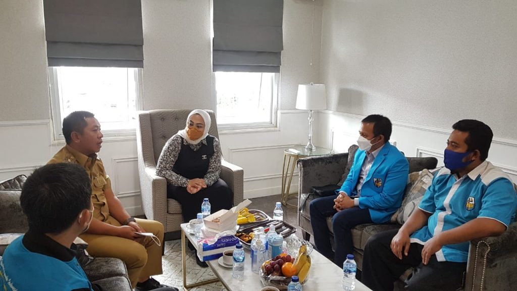 Bupati dr. Cellica Nurrachadiana, wakil bupati H. Aep Syaepulloh bersama KNPI Karawang