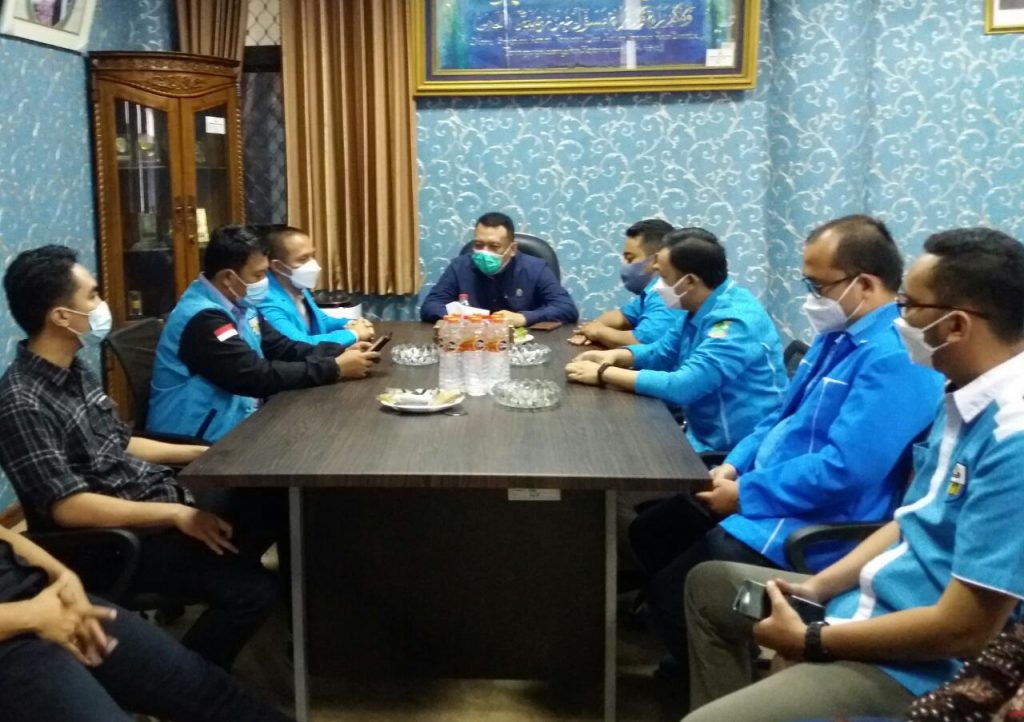 Karawang – Ketua Dewan Perwakilan Rakyat Daerah (DPRD) Kabupaten Karawang, Pendi Anwar berdiskusi dengan pengurus KNPI untuk membahas kepemudaan di Karawang.