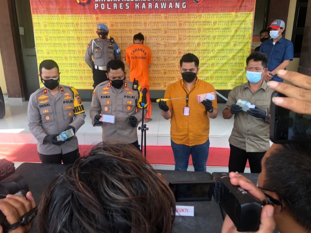 Melalui jumpa pers, Rabu (24/4/2021), Kapolres Karawang AKBP Rama Samtama Putra S.I.K.M.H.M.MSi mengatakan pelaku yang berhasil di amankan adalah SP (29) warga Sindang Mulya, Kabupaten Karawang.