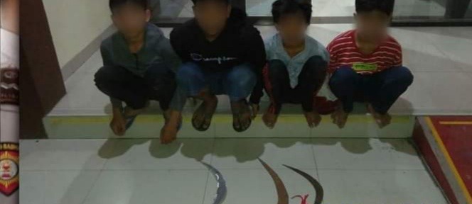 Hasilnya personil berhasil mengamankan anak dibawah umur membawa senjata tajam berupa tiga bilah celurit dan dua buah sepeda motor jenis Honda Supra X Nopol T 6921 HB , Sepeda motor Suzuki Smas. (rls/glg)